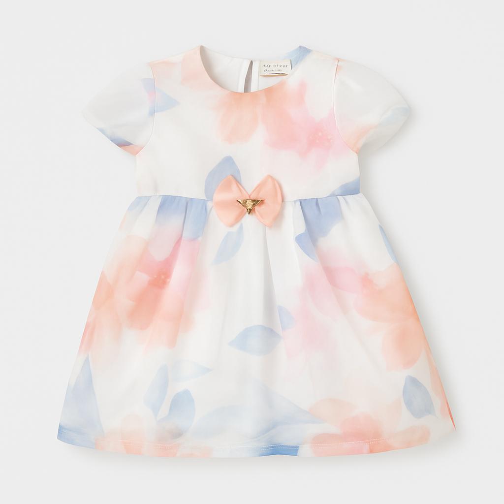 Questo incantevole vestitino presenta una dolce fantasia floreale che trasforma ogni giornata in una festa di colori! Realizzato in un tessuto leggero e morbido, il motivo floreale dai toni pastello di rosa e azzurro regala un’atmosfera romantica e primaverile. La delicata cintura con fiocchetto sul davanti aggiunge un tocco di eleganza, perfetto per cerimonie o eventi speciali. Le maniche corte e il taglio ampio garantiscono comfort e libertà di movimento. Nonostante sia usato, il vestito è in ottime condizioni e pronto per accompagnare la tua piccola in nuove avventure stilose! Un capo imperdibile per ogni piccola fashionista!