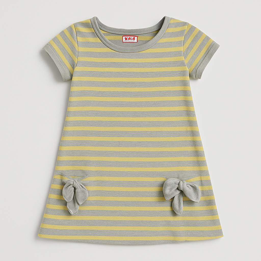 Questo adorabile vestitino a righe di Gettì è un'aggiunta perfetta al guardaroba delle piccole! Realizzato in un morbido tessuto, presenta un vivace motivo a righe grigie e gialle che diffonde allegria. Le simpatiche taschine laterali decorate con fiocchetti in grigio offrono un tocco di originalità e praticità. Con le maniche corte e il taglio leggermente svasato, è ideale per le giornate di sole e le avventure all'aperto. Sebbene sia un capo usato, è in buone condizioni e pronto per essere sfoggiato da una piccola stilosa! Un vestito comodo e trendy, perfetto per ogni occasione!