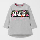 Questa incantevole tunica grigia, perfetta per le piccole sognatrici, è un vero colpo di fulmine! Con un divertente motivo "MAGIC Hawaii" stampato in vivaci colori, porta un tocco di esotismo e magia nel guardaroba. Le maniche lunghe garantiscono comfort, rendendola ideale per le fresche serate estive e le avventure quotidiane. Realizzata in morbido cotone, è perfetta per giocare o per un look alla moda. Pur essendo usata, si presenta in ottime condizioni, pronta per essere indossata e far brillare ogni outfit! Questa tunica è un must-have per ogni piccola esploratrice!