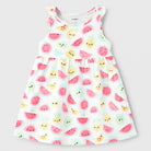 Questo delizioso abitino estivo farà felice ogni piccola amante della frutta! Realizzato in un morbido cotone, presenta un vivace motivo di angurie, limoni e ananas che porta tanta allegria. Le spalline comode e il taglio ampio rendono questo vestitino perfetto per giocare e divertirsi nelle giornate di sole. Nonostante sia usato, si presenta in ottime condizioni e sarà un'ottima aggiunta al guardaroba estivo delle tue bimbe! Un capo divertente e fresco, ideale per creare look colorati e giocosi!