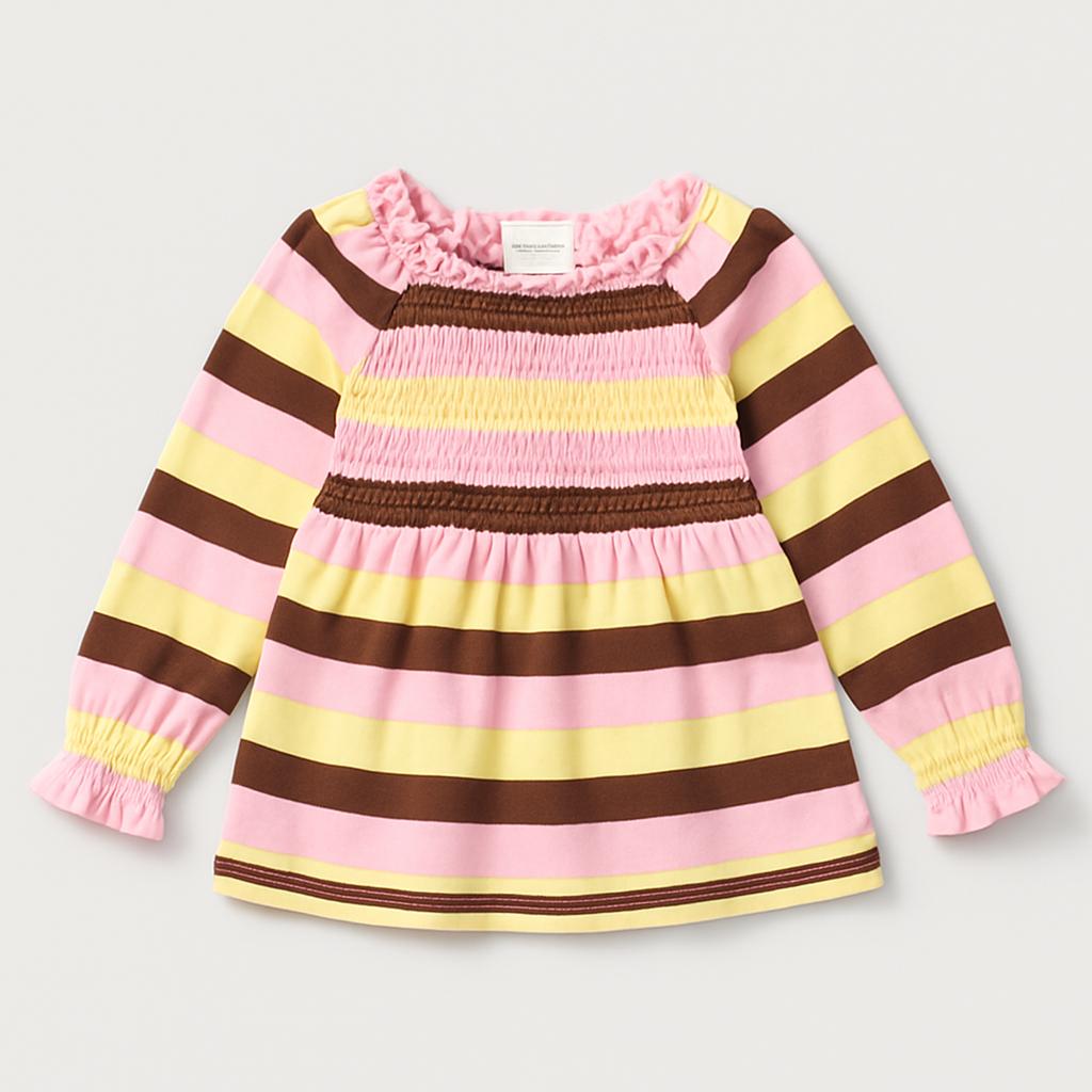 Questa deliziosa maglietta a righe è perfetta per le piccole sognatrici! Realizzata in morbido cotone, presenta un vivace gioco di colori: rosa, giallo e marrone. Il design con arricciatura sul collo e sulle maniche infonde un tocco di dolcezza, mentre le righe creano uno stile allegro e giocoso. La vestibilità comoda la rende ideale per ogni occasione, dai pomeriggi al parco alle festicciole con gli amici. Nonostante sia un capo usato, è in ottime condizioni e pronta per essere indossata da una piccola stilista! Un must-have che unisce comfort e stile!