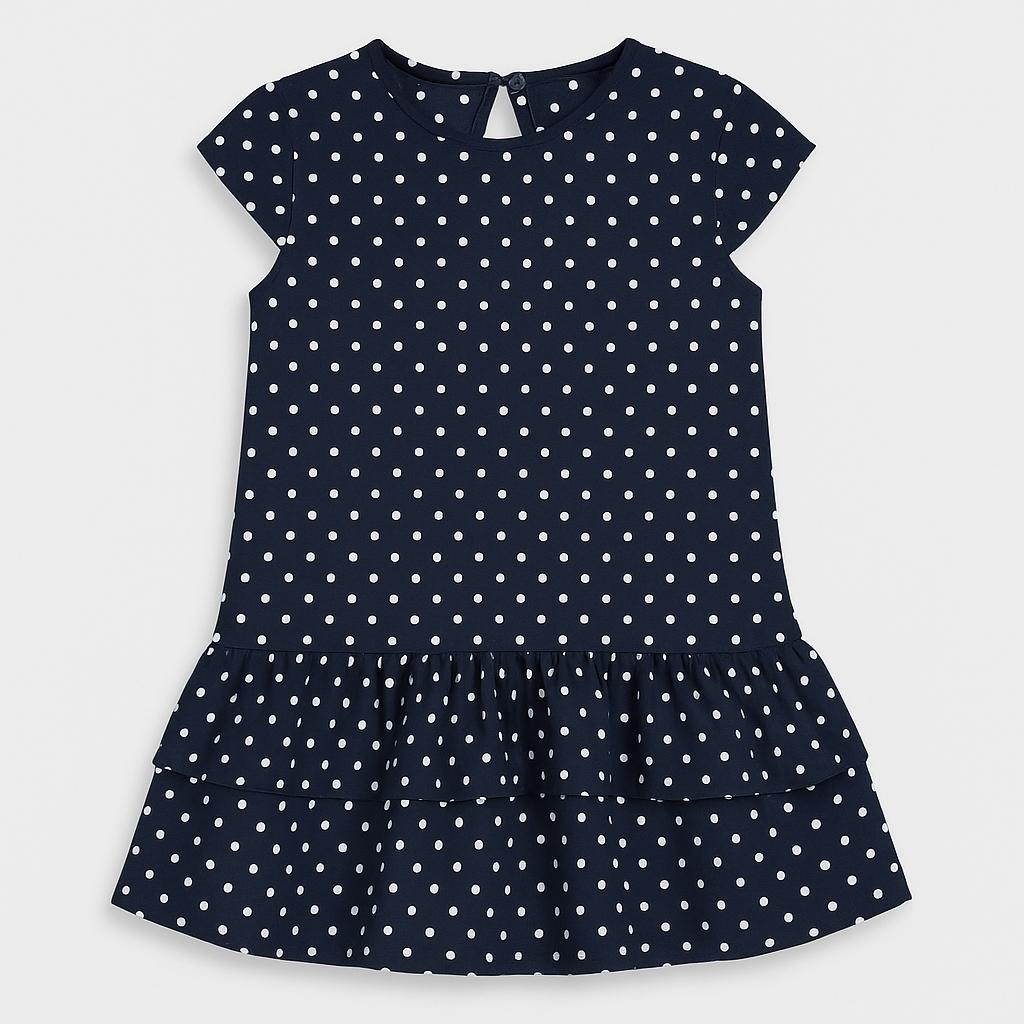 Questo adorabile vestitino a pois è un vero classico per le piccole fashioniste! Realizzato in morbido tessuto, presenta una base nera decorata con piccoli pois bianchi che donano un tocco vivace e giocoso. Il design a maniche corte e il morbido volant in basso creano una silhouette divertente e femminile, perfetta per ogni occasione, dai compleanni alle uscite con la famiglia. Nonostante sia un capo usato, è in ottime condizioni e pronto per dare vita a nuovi ricordi! Un must-have per le piccole amanti dello stile!