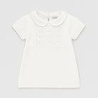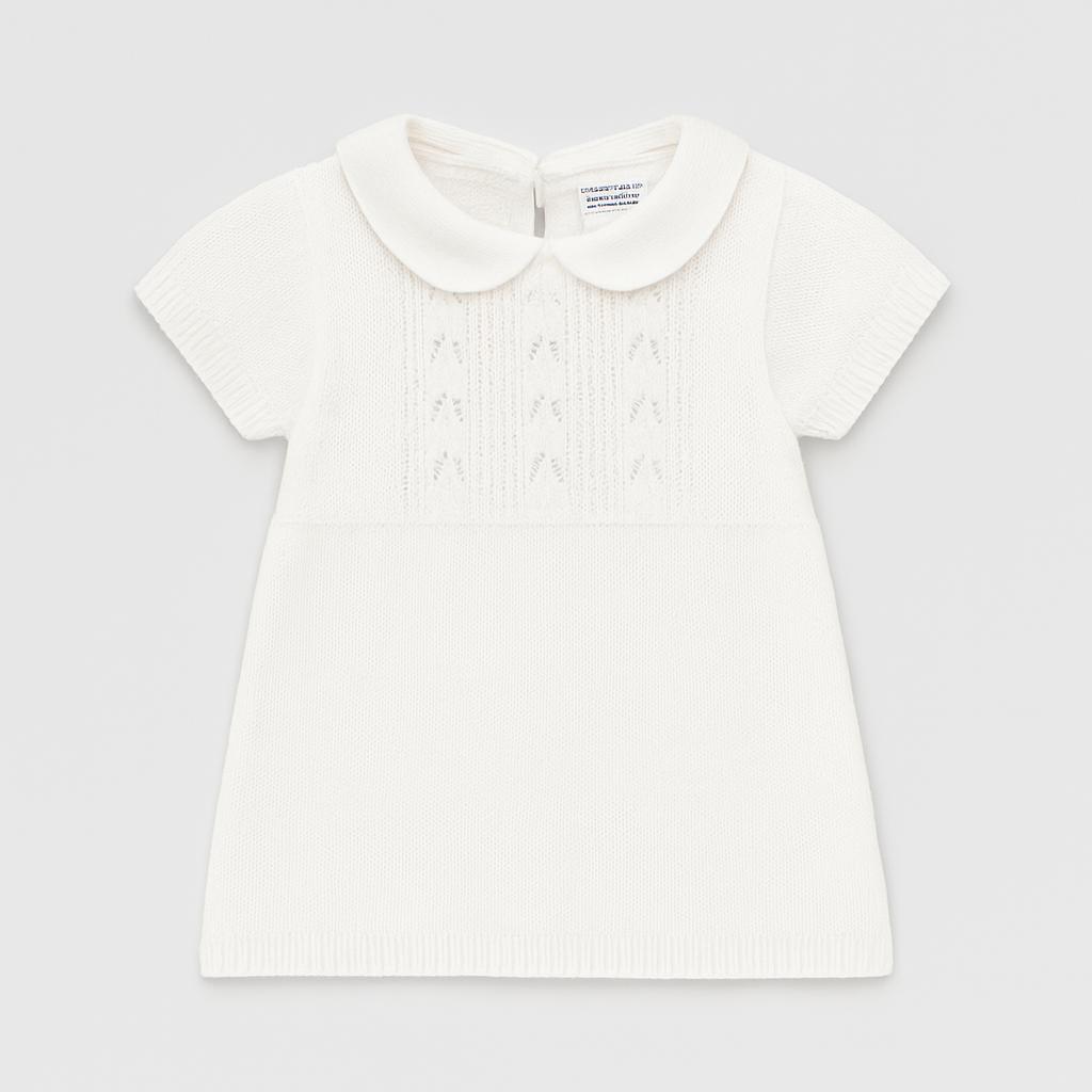 Questo adorabile vestitino bianco è perfetto per le piccole principesse! Realizzato in un morbido cotone, presenta un delicato motivo a maglia e un colletto raffinato che aggiunge un tocco chic. Le maniche corte lo rendono ideale per le giornate estive, mentre il design semplice e pulito lo rende versatile per qualsiasi occasione, dalle feste ai giochi all'aperto. Nonostante sia un capo usato, si presenta in ottime condizioni, pronto per essere indossato da una piccola sognatrice che ama sentirsi speciale! Un vero must-have per ogni guardaroba!