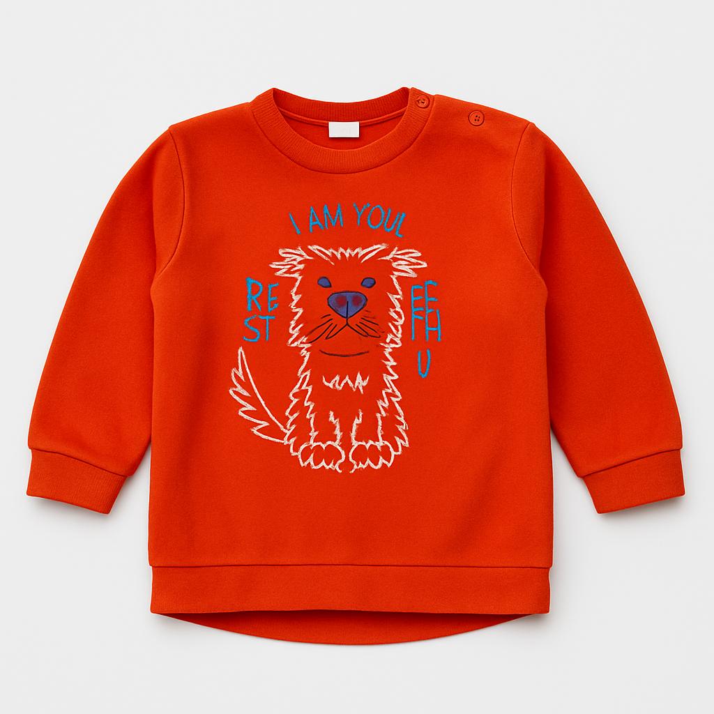 Questa adorabile maglia arancione è perfetta per i più piccoli che amano i cuccioli! Realizzata in morbido tessuto felpato, offre calore e comfort per le giornate più fresche. Sul fronte, un simpatico disegno stilizzato di un cane con la scritta “I AM YOUR BEST FRIEND” aggiunge un tocco giocoso e affettuoso. Le maniche lunghe e le aperture a pressione sulla spalla rendono questo capo pratico e facile da indossare. Nonostante sia un capo usato, mantiene un'ottima qualità ed è pronto a diventare il nuovo preferito nel guardaroba del tuo bambino! Un must-have per i piccoli amanti degli animali!