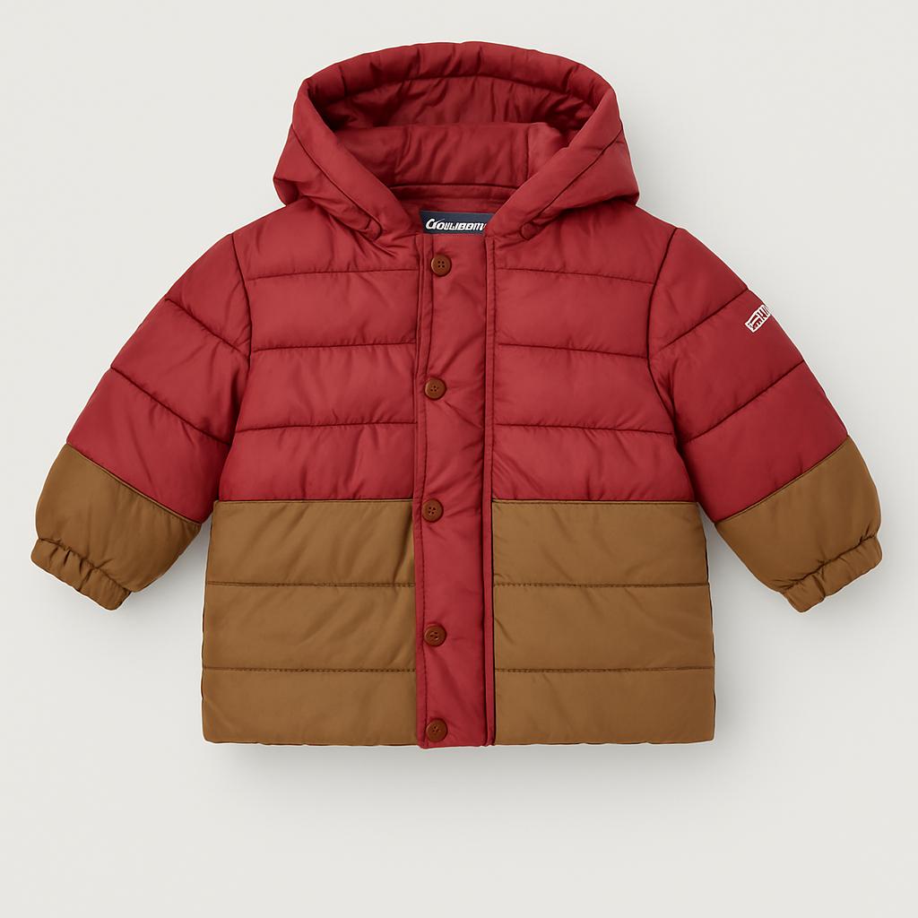 Questo adorabile giubbotto imbottito è perfetto per affrontare le giornate fredde! Caratterizzato da un vivace mix di rosso e marrone, è un capo pratico e trendy. La felice combinazione di colori, con maniche a sbuffo e cappuccio, regala un tocco di stile all'outfit invernale dei piccoli. I bottoni frontali rendono facile indossarlo e toglierlo. Nonostante sia un capo usato, si trova in ottime condizioni, pronto a offrire calore e comfort. Un'ottima scelta per le avventure all'aperto o per le passeggiate nel parco!