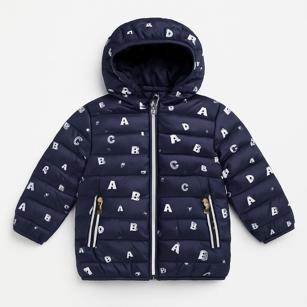 Questa giacca imbottita in blu scuro è perfetta per tenere al caldo i tuoi piccoli durante le fresche giornate invernali! Decorata con lettere bianche su tutta la superficie, aggiunge un tocco giocoso e vivace al look. Il cappuccio foderato e le cerniere dorate donano un tocco di eleganza, mentre le tasche laterali offrono comodità e praticità. Nonostante sia un capo usato, si presenta in ottime condizioni ed è pronto per nuove avventure! Questa giacca è l’alleato ideale per i piccoli esploratori!