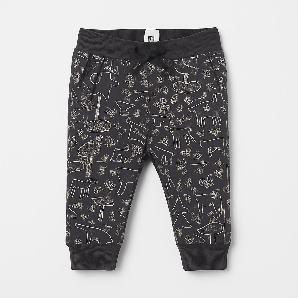 Questi adorabili pantaloni per bambini sono perfetti per ogni piccola esploratrice! Realizzati in morbido cotone, presentano un divertente motivo di disegni in bianco su sfondo grigio scuro, che raccontano storie di avventure nella natura. La vita elasticizzata con coulisse assicura una vestibilità confortevole e sicura, mentre i polsini alle caviglie donano un tocco trendy. Ideali per giocare, correre e divertirsi, sono un capo usato ma in ottime condizioni, pronto per affrontare nuove avventure! Non lasciarteli sfuggire!