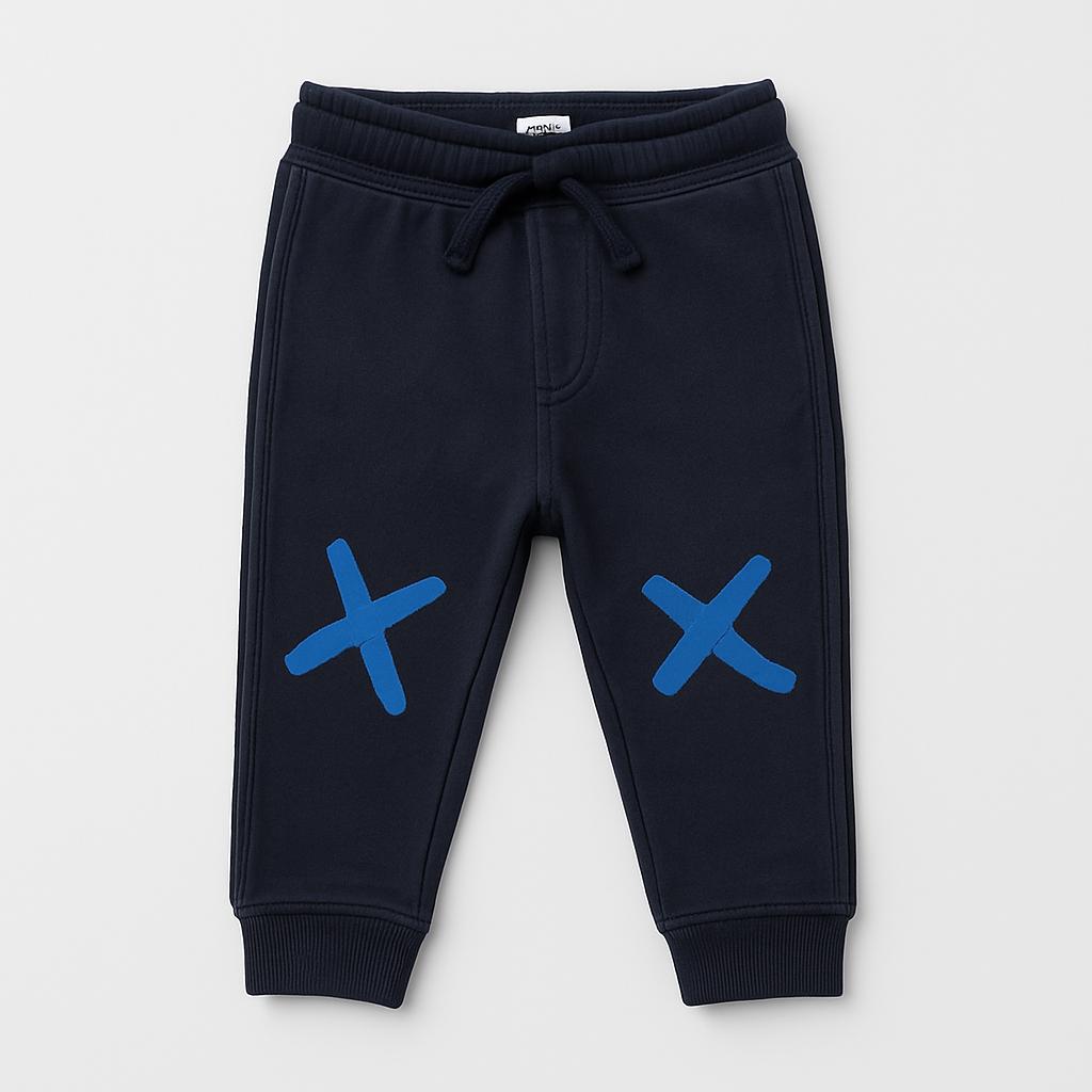 Ce pantalon adorable est parfait pour les petits explorateurs ! Confectionné en coton doux, il offre confort et liberté de mouvement. Son coloris noir classique est rehaussé de deux jolis motifs en forme de « X » bleus, pour une touche d'originalité et de style. Avec sa taille élastiquée confortable et ses chevilles côtelées, il est idéal en toutes occasions, des jeux aux journées à la maison. D'occasion, il est en excellent état et deviendra sans aucun doute un incontournable de la garde-robe de votre enfant !