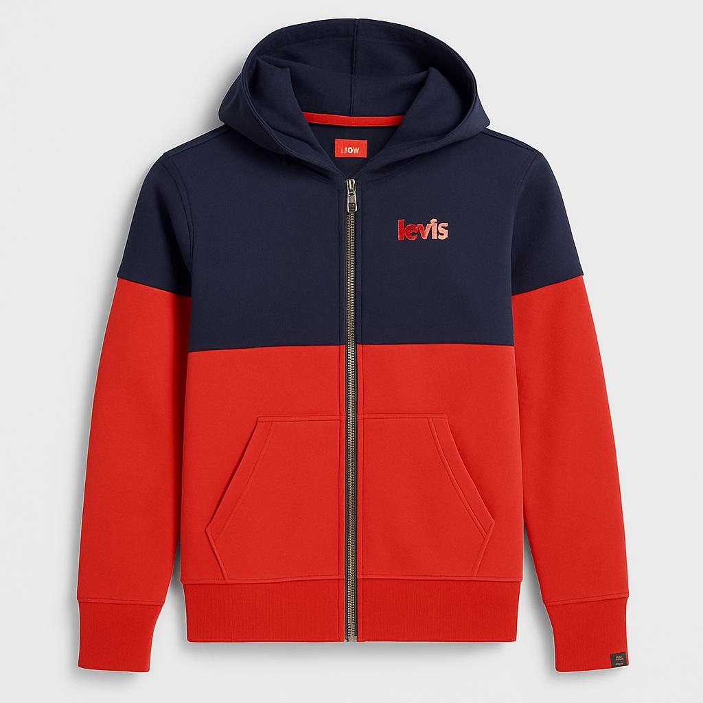 Questo simpatico hoodie firmato Levi's è perfetto per i piccoli che amano stare comodi e alla moda! Realizzato in un caldo e morbido cotone, presenta un vivace mix di colori blu navy e rosso, ideale per dare un tocco di energia al guardaroba. La zip frontale e il cappuccio garantiranno una protezione extra durante le fresche giornate, mentre le tasche laterali sono perfette per riporre piccoli tesori. Nonostante sia un capo usato, è in ottime condizioni e pronto per accompagnare le avventure quotidiane dei più piccoli con stile e comfort. Un must-have per ogni giovane esploratore!