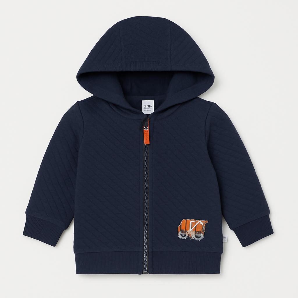 Questo adorabile maglione con cappuccio è il compagno perfetto per le avventure invernali dei tuoi piccoli! Realizzato in un morbido e caldo tessuto blu navy, offre comfort e stile. La zip anteriore è decorata con un dettaglio arancione vivace, mentre sul davanti spicca un dolce ricamo di un simpatico camioncino, aggiungendo un tocco giocoso. Le maniche lunghe e il taglio avvolgente garantiscono calore e libertà di movimento. Sebbene sia un capo usato, è in ottime condizioni e pronto a portare un sorriso sui volti dei tuoi bimbi. Ideale per ogni occasione, da una passeggiata nel parco a un pomeriggio a casa!
