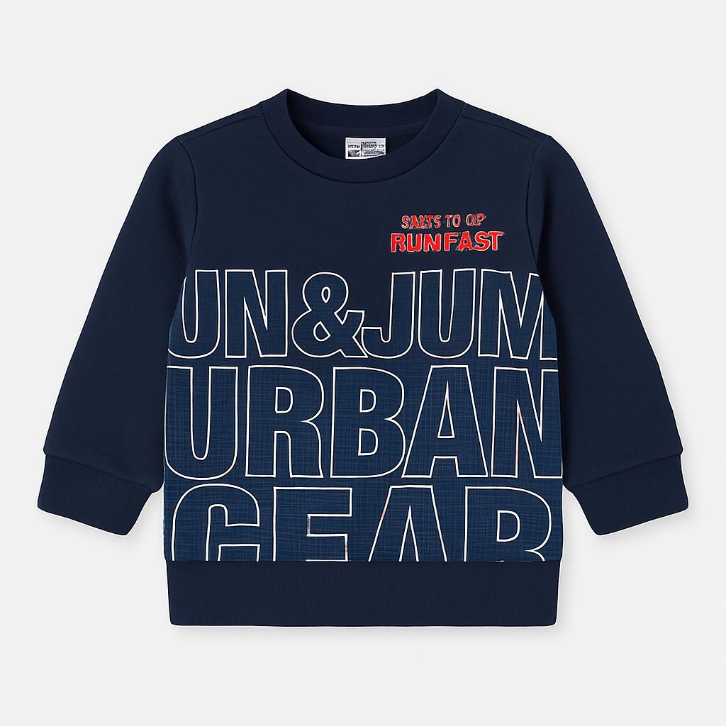 Questo simpatico pullover in tonalità blu scuro è perfetto per i piccoli esploratori! Realizzato in un morbido cotone, offre comfort e calore durante le fresche giornate. La grafica vivace e il messaggio “READY TO GO RUN FAST” aggiungono un tocco sportivo e avventuroso, ideale per i bambini attivi. Le maniche lunghe e il design pratico rendono questo capo versatile, adatto per giochi al parco o semplici uscite con la famiglia. Nonostante sia un pezzo usato, si presenta in ottime condizioni, pronto a far parte del guardaroba del tuo piccolo!