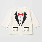 Fai brillare il guardaroba del tuo piccolo con questa adorabile magliettina a maniche lunghe! Disegnata come un elegante smoking, presenta una camicia bianca con dettagli neri e un papillon rosso, perfetta per le occasioni speciali. I bottoncini neri e le tasche finte aggiungono un tocco chic e divertente al look. Nonostante sia un capo usato, è in ottime condizioni e garantisce comfort nei momenti di festa o nelle celebrazioni familiari. Un lontano sogno di classe per i piccoli!