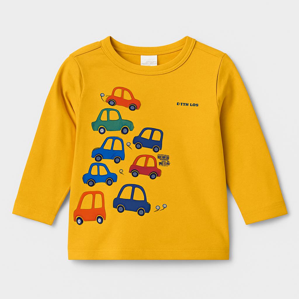 Questa vivace maglietta a maniche lunghe in un allegro giallo sole è perfetta per i piccoli amanti delle auto! Decorata con simpatiche illustrazioni di macchine colorate, porta un sorriso e tanta energia nel guardaroba. Realizzata in morbido cotone, offre comfort e libertà di movimento per le avventure quotidiane. Nonostante sia un capo usato, è in ottime condizioni e pronta per essere indossata. Un pezzo versatile e divertente che farà felici i bambini e i genitori!