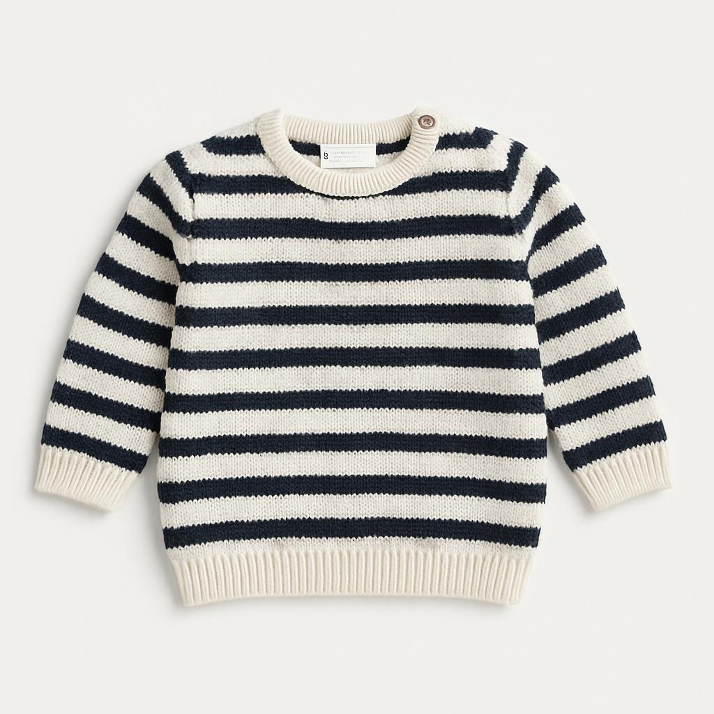 Questo adorabile maglione a righe bianche e blu è perfetto per i piccoli avventurieri in cerca di comfort e stile! Realizzato in morbido materiale, garantirà calore e avvolgenza durante le fresche giornate. Le righe vivaci donano un tocco marinaro e divertente, rendendolo ideale per passeggiate al parco o giochi all'aperto. I dettagli a costine sui polsini e sul collo aggiungono un tocco di raffinatezza. Nonostante sia usato, si presenta in ottime condizioni, pronto a diventare un nuovo favorito del guardaroba. Un must-have per i piccoli esploratori!