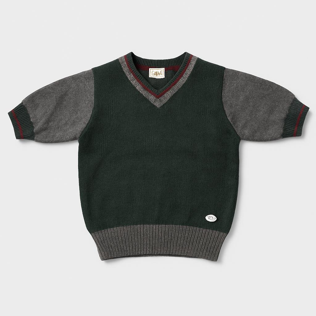 Questo pullover elegante e accogliente è perfetto per i piccoli stiletti! Realizzato in morbido tessuto, presenta un raffinato mix di colori grigi e verdi, con dettagli a righe che lo rendono unico. La vestibilità comoda e le maniche a tre quarti lo rendono ideale per il cambio di stagione. Adatto sia per occasioni speciali che per look casual, questo pullover usato si presenta in ottime condizioni e sarà un'aggiunta versatile al guardaroba del tuo bambino. Un tocco di classe per ogni piccolo fashionista!