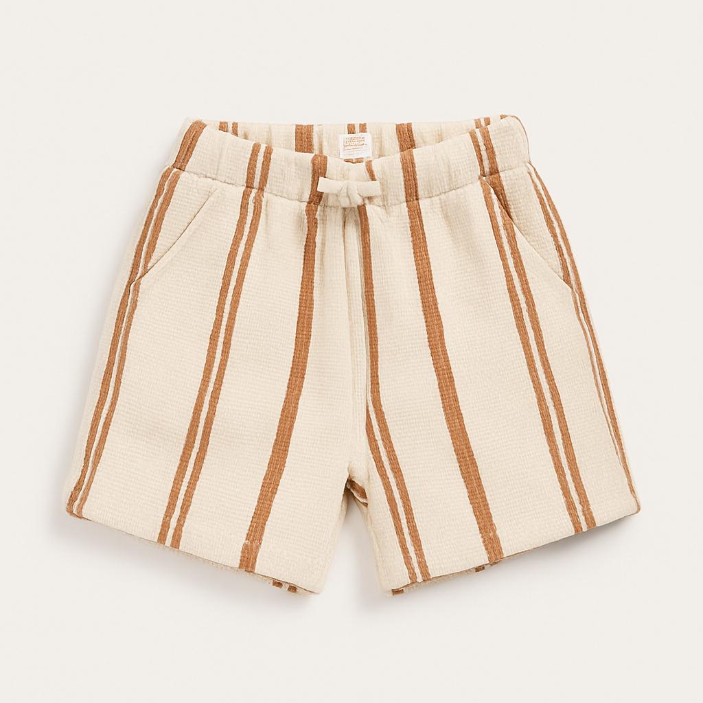 Questi adorabili pantaloni corti a righe sono il capo perfetto per le avventure estive dei più piccoli! Realizzati in morbido cotone, presentano un design fresco e giocoso con strisce color beige e marrone che richiamano i colori della natura. La vita elastica garantisce una vestibilità comoda, perfetta per correre e giocare. Con due pratiche tasche laterali, sono ideali per portare con sé piccoli tesori. Anche se usati, si trovano in ottime condizioni e pronti a regalare a ogni bambino stile e comfort durante le calde giornate estive!