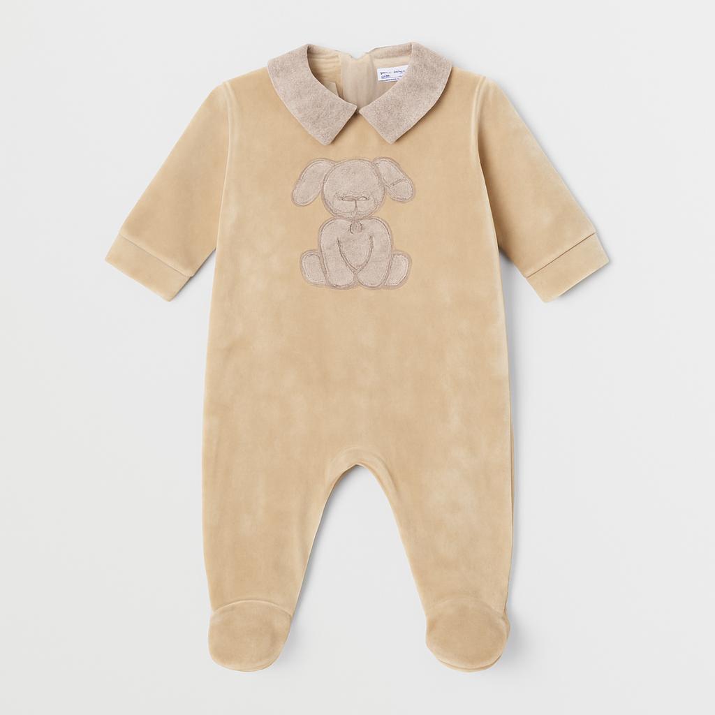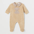 Questo adorabile pagliaccetto in morbido velluto è l'ideale per tenere al caldo il tuo piccolo! Di un delicato colore beige con un colletto elegante, presenta un dolcissimo ricamo di un cagnolino sul davanti, perfetto per aggiungere un tocco giocoso. Le maniche lunghe e i piedi chiusi garantiscono comfort e praticità, mentre il tessuto è ideale per la pelle delicata dei bambini. Nonostante sia un capo usato, si presenta in ottime condizioni, pronto per accompagnare il tuo bimbo in tutte le sue avventure quotidiane! Un must-have per i piccolini che amano sentirsi speciali!