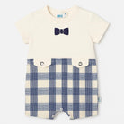 Questo adorabile pagliaccetto è perfetto per il tuo piccolo dandy! Realizzato con un fresco cotone, presenta una parte superiore bianca con un elegante motivo a papillon, mentre la parte inferiore è in un vivace tessuto a quadri blu e bianco, con dettagli di bottoni che aggiungono un tocco chic. Con le sue maniche corte e il design pratico, è comodissimo per ogni avventura estiva. Nonostante sia usato, si trova in ottime condizioni e sarà sicuramente un capo versatile per ogni occasione, da una giornata in giardino a una festa con amici!