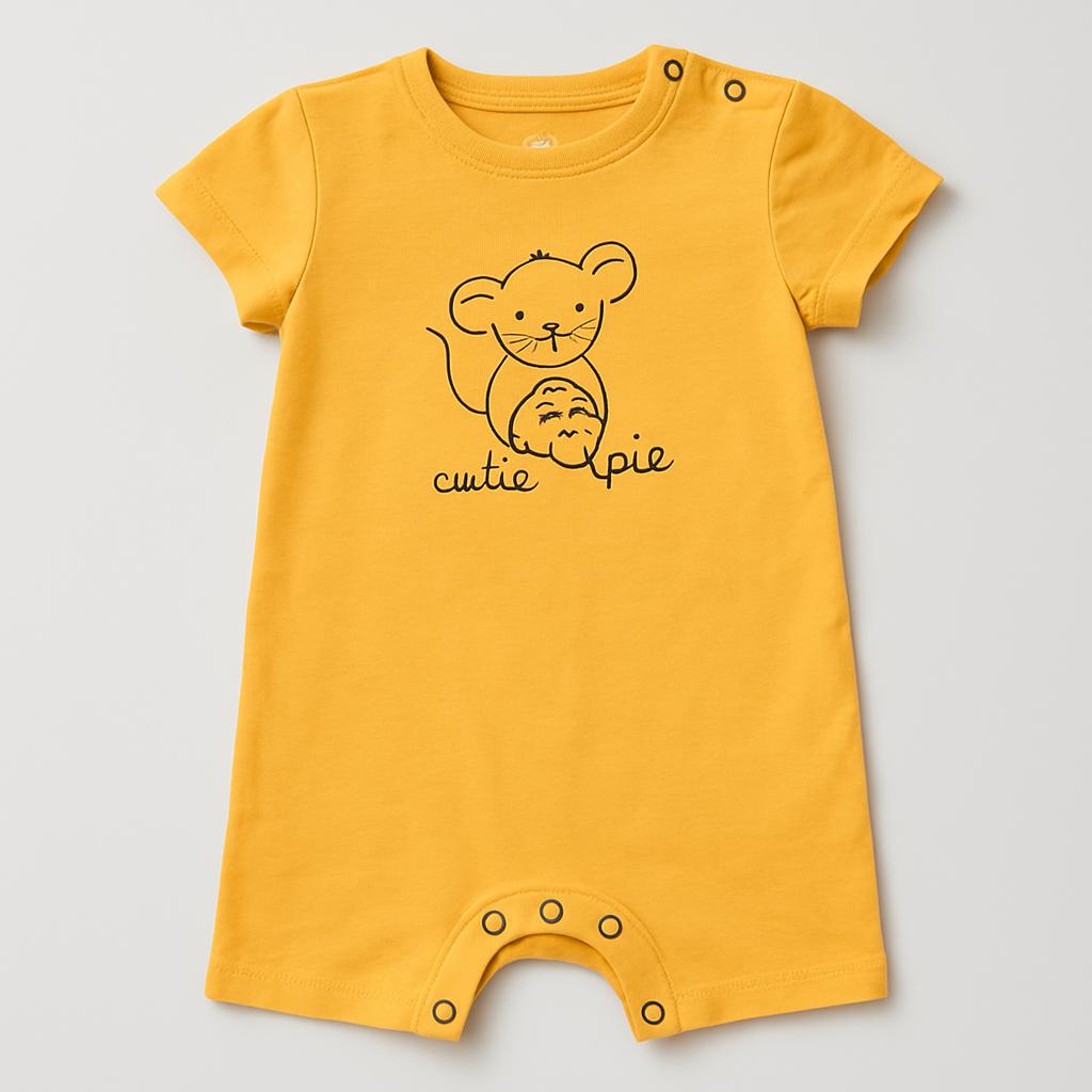Cette adorable grenouillère jaune soleil est parfaite pour les tout-petits les plus mignons ! Avec son adorable imprimé souris et le slogan « Cute Pie », elle apporte une touche de fantaisie à toutes les garde-robes. Confectionnée en coton doux, elle est confortable et pratique, idéale pour jouer et partir à l'aventure. Ses manches courtes et ses boutons-pression à l'entrejambe facilitent le change. Bien qu'elle soit d'occasion, elle est en excellent état et prête à faire le bonheur de tous les enfants ! Un excellent choix pour les parents qui recherchent confort et style pour leurs petits !