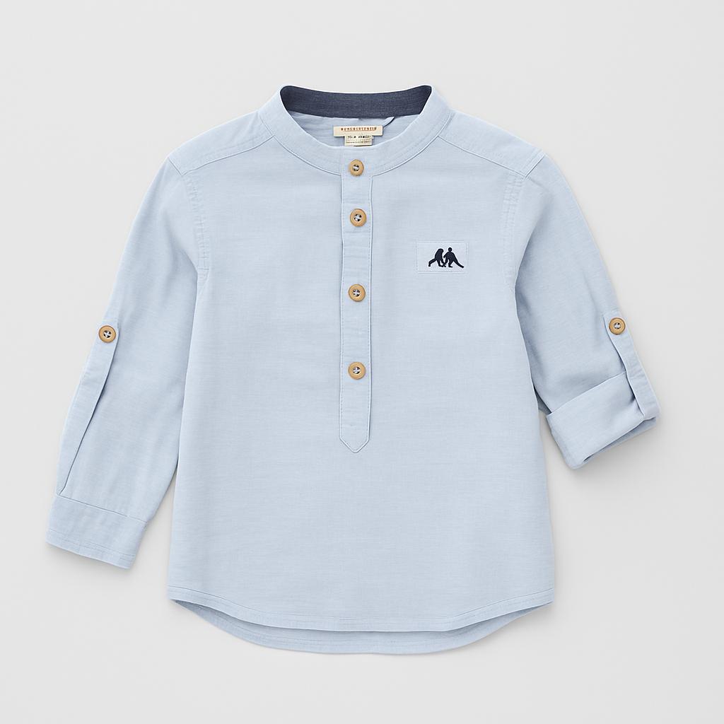 Cette élégante chemise à manches longues est parfaite pour le petit explorateur de votre vie ! Confectionnée dans un tissu bleu vif, elle offre un style à la fois décontracté et raffiné. Son col montant et ses boutons en bois lui confèrent un charme vintage. Le petit appliqué animal sur la poitrine la rend encore plus adorable ! Idéale pour les occasions spéciales ou une sortie en famille, cette chemise d'occasion est en excellent état et complétera à merveille la garde-robe de votre enfant.