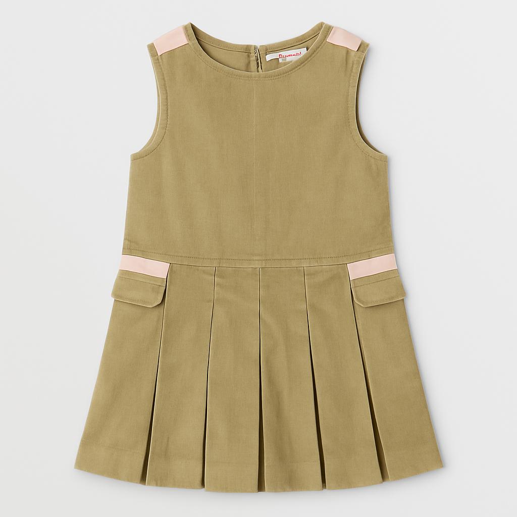 Cette adorable robe en velours côtelé est un véritable trésor pour la garde-robe des petites filles ! D'une élégante couleur olive, sa coupe sans manches est parfaite pour le printemps et l'été. Les coutures roses aux épaules ajoutent une touche de douceur, tandis que les plis à l'ourlet apportent mouvement et originalité. Avec ses deux poches avant pratiques, elle est idéale pour les petites aventurières prêtes à explorer le monde ! Bien qu'elle soit d'occasion, elle est en excellent état et prête à habiller vos petites fashionistas avec style. Une robe polyvalente et chic, parfaite pour toutes les occasions !