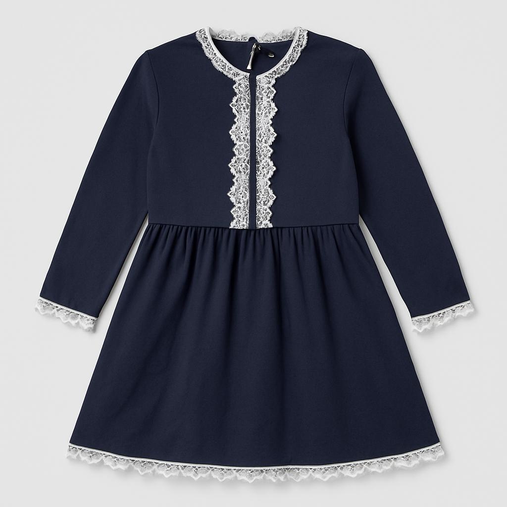 Cette ravissante robe bleu foncé est parfaite pour les petites princesses ! Confectionnée en coton doux, elle offre confort et style en toute occasion. Une délicate dentelle blanche orne les bords et le col, ajoutant une touche d'élégance et de raffinement. Avec ses manches longues, elle est idéale pour les fraîches journées d'automne ou d'hiver. Bien qu'ayant déjà été portée, elle est en excellent état et prête à illuminer la garde-robe de votre petite fille. Une robe qui fera rêver toutes les petites princesses !