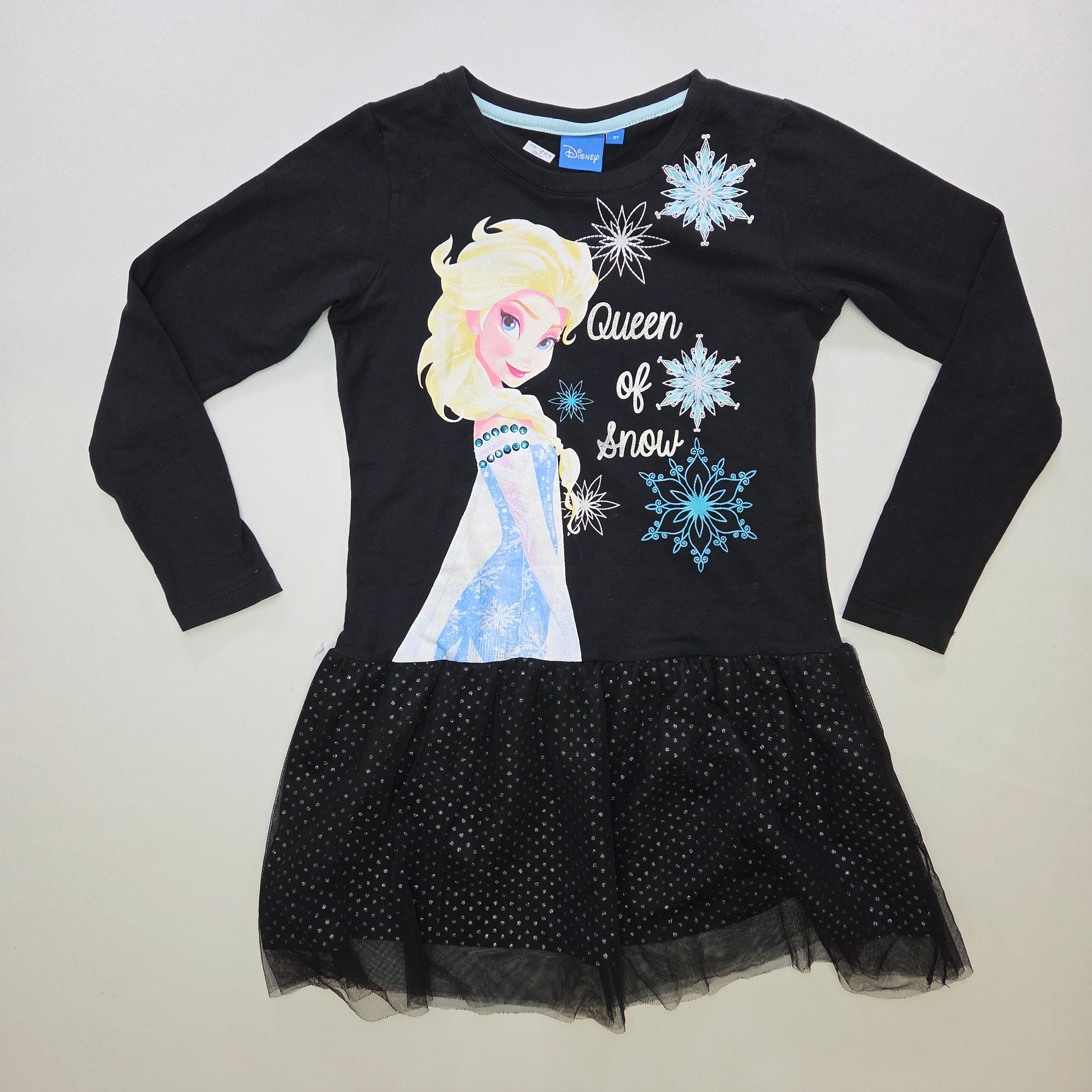Cette ravissante robe pour petite fille est une véritable ode au royaume des glaces ! Avec ses manches longues et sa jolie jupe en tulle noir à pois, elle incarne à merveille l'esprit d'une princesse. L'imprimé « Reine des Neiges », orné d'Elsa, ajoute une touche de magie et de féerie. Confectionnée en coton doux, elle est parfaite pour les grandes occasions ou simplement pour égayer le quotidien. Bien qu'elle soit d'occasion, elle est en excellent état et fera le bonheur des petites filles qui aiment rêver et s'amuser !