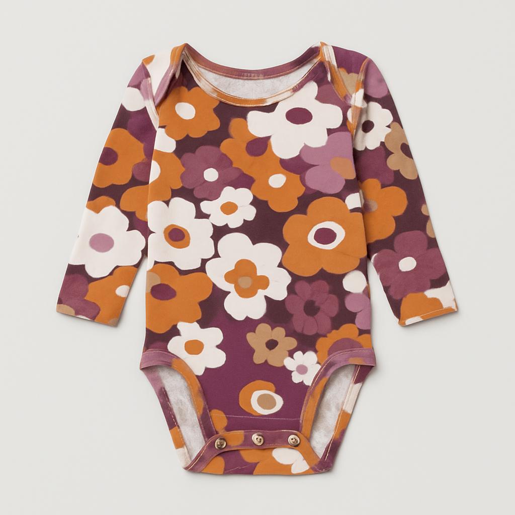 Questo adorabile body a maniche lunghe è perfetto per le piccole pesti! Realizzato in morbido cotone, presenta un vivace motivo floreale in tonalità di arancione, viola e bianco che aggiunge un tocco di allegria al guardaroba. Le pratiche chiusure a pressione rendono il cambio facile e veloce, mentre le maniche lunghe questo capo lo rendono ideale per le fresche giornate autunnali. Nonostante sia usato, si presenta in ottime condizioni, pronto per accompagnare la tua piccola in tante avventure! Un capo versatile per un look casual e trendy!