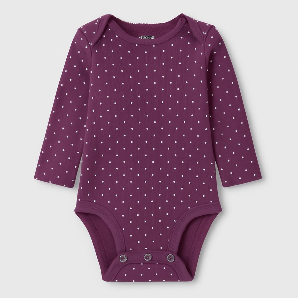 Questo adorabile body a maniche lunghe in morbido cotone è un vero must-have per i più piccoli! La tonalità viola, arricchita da dolci pois bianchi, aggiunge un tocco di allegria e stile. La chiusura con bottoni a pressione facilita il cambio e garantisce il massimo comfort. Perfetto per le giornate fresche, può essere indossato da solo o abbinato a pantaloni e maglie. Anche se usato, si presenta in ottime condizioni, pronto a diventare il preferito del tuo bimbo!