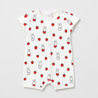 Questo adorabile body per neonati, caratterizzato da un delizioso motivo con coniglietti e fragole, è perfetto per le piccole furberie! Realizzato in un cotone morbido e leggero, garantisce comfort e freschezza nelle giornate più calde. Le maniche corte e la chiusura a bottoni rendono facile e pratica la vestizione. Nonostante sia un capo usato, è in ottime condizioni ed è un'ottima scelta per far sentire la tua piccola fashionista dolce e simpatica. Un must-have per ogni bimbi che ama il divertimento!
