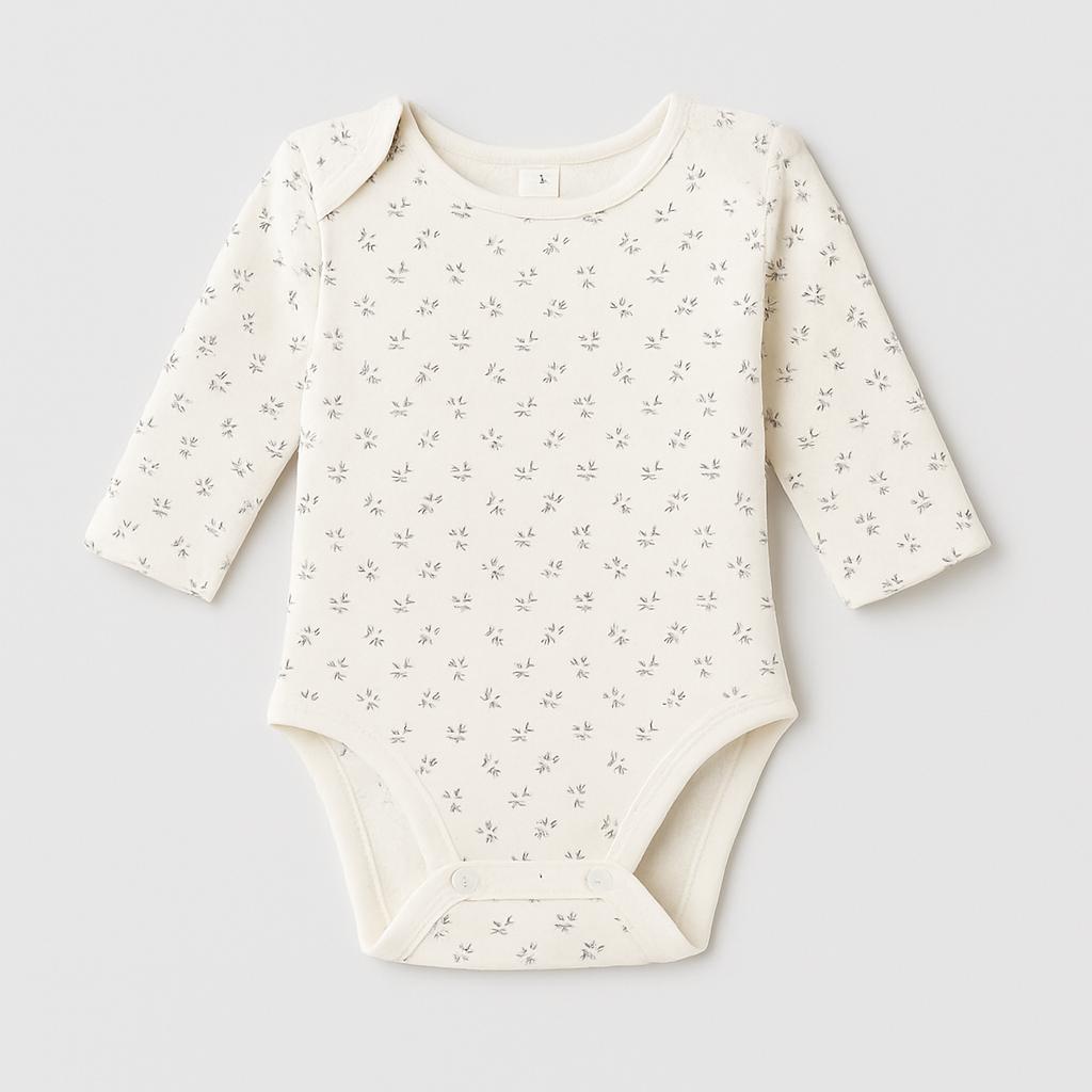 Questo adorabile body per neonati è il perfetto mix di comfort e stile! Realizzato in morbido cotone, offre una sensazione delicata sulla pelle del tuo piccolo. Il suo design grigio chiaro è impreziosito da un tenero motivo a foglioline che affascina con la sua dolcezza. Le maniche lunghe lo rendono ideale per le giornate fresche, mentre i bottoncini sul fondo facilitano il cambio del pannolino. Nonostante sia un capo usato, si presenta in ottime condizioni, pronto a vestire il tuo bimbo con tenerezza e praticità. Un must-have per le giornate in casa e per le passeggiate!