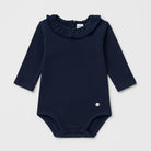 Questo adorabile body a maniche lunghe di colore blu scuro è un capolavoro di comfort e stile per i più piccoli! Realizzato in un morbido cotone, offre una vestibilità cucita ad arte e un delicato colletto in pizzo che aggiunge un tocco di eleganza.