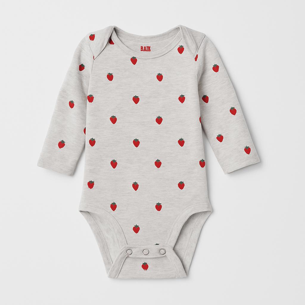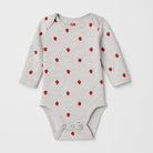 Questo adorabile body a maniche lunghe è perfetto per i più piccoli! Realizzato in morbido cotone grigio mélange, è impreziosito da deliziose fragole rosse che portano un tocco fruttato e giocoso. Le aperture a pressione sul fondo ne facilitano il cambio, mentre le maniche lunghe tengono al caldo i piccoli durante le fresche giornate. Nonostante sia un capo usato, è in ottime condizioni e ideale per rendere ogni outfit speciale. Un vestitino irresistibile per i piccoli amanti della moda!