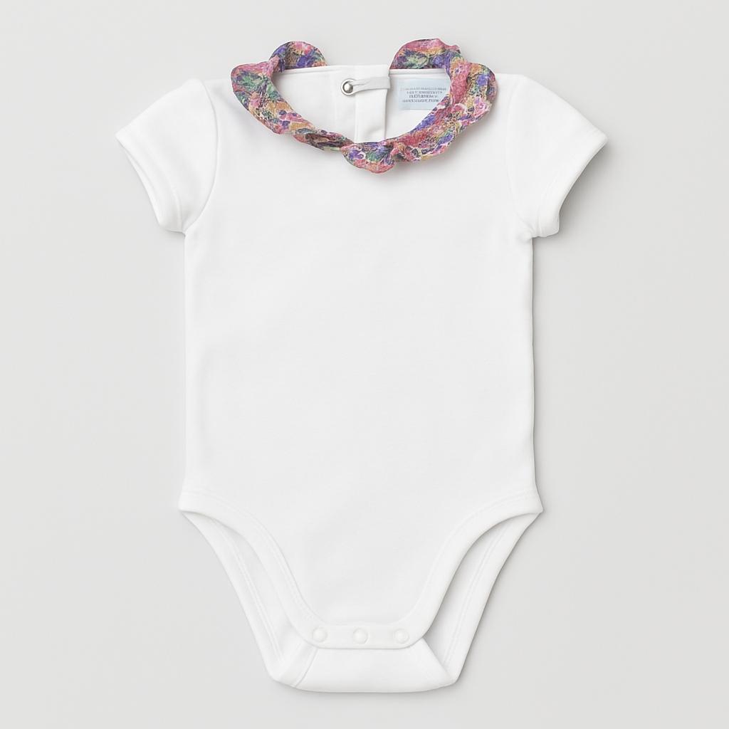 Questo adorabile body bianco è perfetto per la tua piccola! Realizzato in morbido cotone, offre comfort e praticità per ogni giorno. La vera star? Il colletto decorato con un vivace motivo floreale, che aggiunge un tocco di colore e allegria. Con maniche corte e pratici bottoncini sul retro, è facile da indossare e da togliere, ideale per le piccole avventure quotidiane. Nonostante sia un capo usato, si presenta in ottime condizioni e pronto a far brillare il guardaroba della tua bimba! Un must-have per ogni piccola amante della moda!