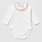 Questo adorabile body bianco è un capo essenziale per il guardaroba del tuo bambino, perfetto per ogni occasione! Realizzato in morbido cotone, offre comfort e libertà di movimento. Il colletto arricciato con un delicato bordo rosso aggiunge un tocco di eleganza e dolcezza, rendendolo ideale per essere indossato sotto una giacca o da solo. Le maniche lunghe sono perfette per le fresche giornate d'inverno, mentre i bottoncini sul fondo garantiscono praticità nei cambi. Anche se è un capo usato, è in ottime condizioni e pronto a portare sorrisi e comfort al tuo piccolo!