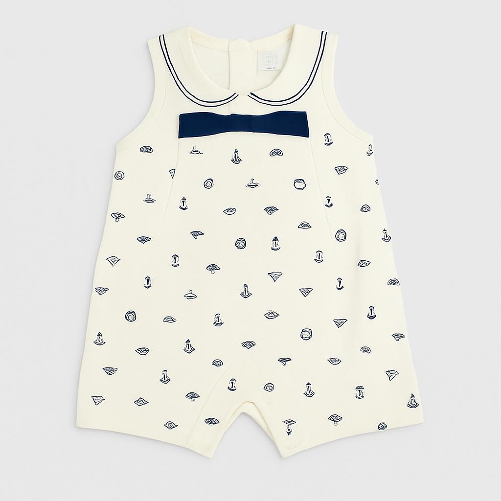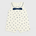 Questo adorabile pagliaccetto bianco è perfetto per le piccole esploratrici! Decorato con dolci motivi marini, tra cui pesci, ancore e barchette, aggiunge un tocco giocoso a qualsiasi outfit. La pratica chiusura a bottoni rende il cambio veloce e facile, mentre il colletto blu scuro conferisce un accento elegante. Realizzato in un morbido cotone, è ideale per le calde giornate estive. Anche se è un pezzo usato, si presenta in ottime condizioni, pronto per creare ricordi indimenticabili!