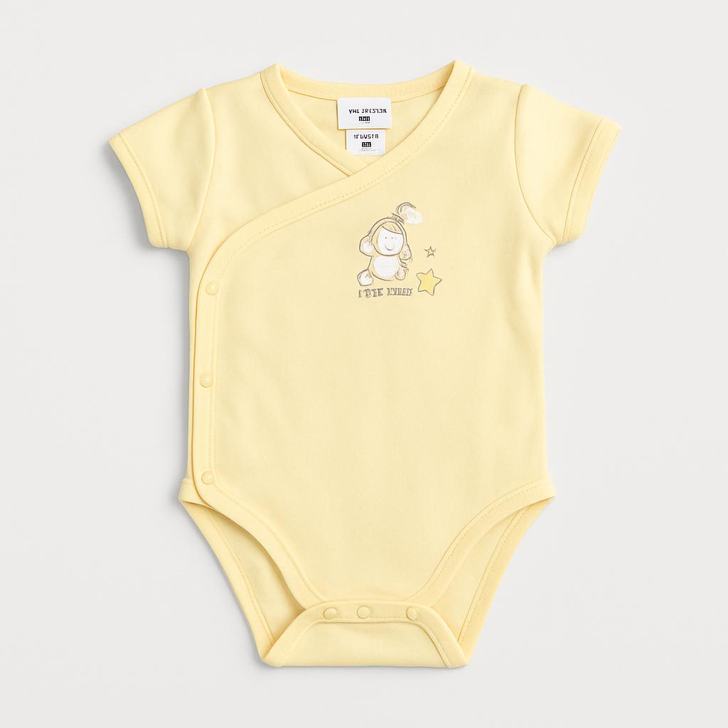 Questo adorabile body per neonato, di un dolce giallo pastello, è perfetto per coccolare il tuo piccolino! Realizzato in morbido cotone, garantisce comfort e calore. Il delicato motivo di un coniglietto su sfondo stellato aggiunge un tocco di tenerezza. Con maniche corte e pratici bottoncini sulla parte inferiore, rende il cambio rapido e semplice. Anche se è un capo usato, si presenta in ottime condizioni e sarà un'ottima aggiunta al guardaroba del tuo bebè. Perfetto per ogni occasione, dal nido al gioco!