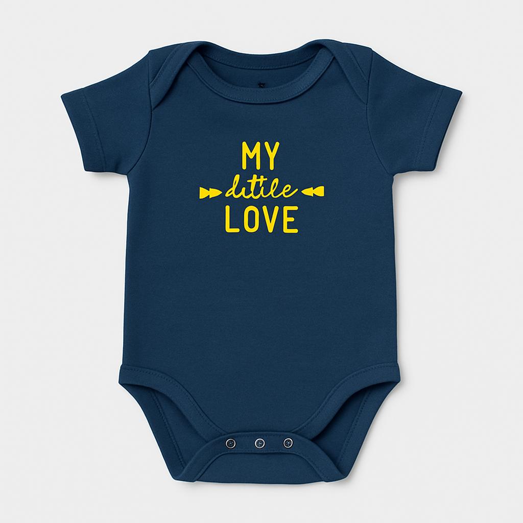 Questo adorabile body per neonati è un vero inno all'amore! Realizzato in morbido cotone, nel classico blu navy, è decorato con la scritta "MY little LOVE" in un vivace giallo che sprigiona dolcezza. Le maniche corte e il taglio pratico offrono comfort e libertà di movimento, perfetto per i piccoli esploratori. I bottoni a pressione sul fondo rendono il cambio pannolino veloce e semplice. Nonostante sia un capo usato, si presenta in ottime condizioni, pronto a coccolare il tuo piccolo tesoro con stile e affetto! Un must-have per ogni guardaroba infantile!