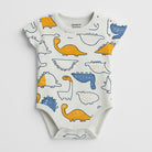 Questo adorabile body per neonati è un vero sogno per i piccoli amanti dei dinosauri! Realizzato in morbido cotone, presenta una vivace stampa di colorati dinosauri su uno sfondo azzurro chiaro, perfetta per dare un tocco di allegria al guardaroba del tuo bimbo. Con maniche corte e chiusura a bottoni sul fondo, è pratico e comodo per il cambio. Nonostante sia un capo usato, si presenta in ottime condizioni ed è ideale per rendere ogni giorno un'avventura preistorica! Un must-have per i piccoli esploratori!