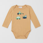 Questo adorabile body a maniche lunghe è perfetto per i piccoli appassionati di veicoli! Realizzato in morbido cotone, il suo caldo colore sand rende ogni outfit accogliente e confortevole. Sul davanti, una vivace stampa di simpatici trattori e camion solleciterà l'immaginazione del tuo bimbo, rendendo ogni giornata di gioco ancora più divertente. I bottoncini sul fondo facilitano le cambi, mentre il taglio pratico permette libertà di movimento. Nonostante sia un capo usato, si trova in ottime condizioni, pronto per accompagnare le avventure del tuo piccolo!