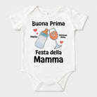 Questo adorabile body celebra l'amore della famiglia e la Festa della Mamma! Realizzato in morbido cotone bianco, presenta un design colorato con un simpatico biberon e un calice, accompagnato da cuoricini. La scritta “Buona Prima festa della Mamma” con i nomi “Mattia” e “Mamma Alice” lo rende unico e personale. Ideale per il tuo piccolo, è perfetto per le occasioni speciali, ma anche per i momenti di quotidianità. Nonostante sia un capo usato, si presenta in ottime condizioni e porterà un sorriso a tutta la famiglia!