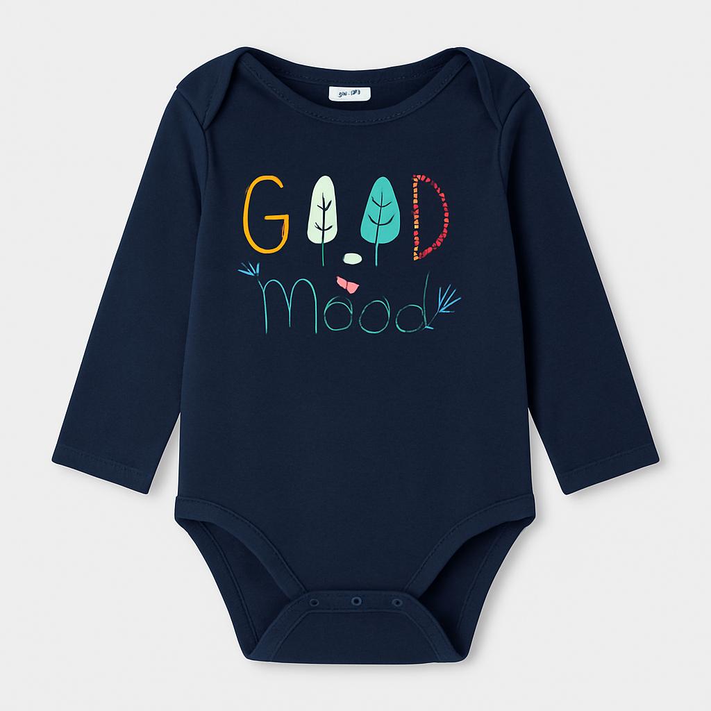 Questo adorabile body a maniche lunghe è perfetto per i piccoli esploratori! Realizzato in morbido cotone, presenta un elegante colore blu navy che si abbina facilmente a qualsiasi outfit. La scritta "Good Mood" al centro, accompagnata da simpatiche illustrazioni di alberi e foglie, trasmette allegria e positività. Con bottoni a pressione sul fondo, è comodissimo per il cambio del pannolino. Nonostante sia un capo usato, è in ottime condizioni e pronto per far sorridere il tuo bimbo durante le sue avventure quotidiane! Un must-have per il guardaroba di ogni neonatino!