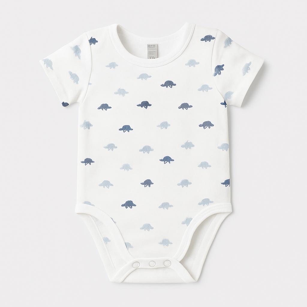 Questo adorabile body per neonati è perfetto per i piccoli esploratori! Realizzato in morbido cotone bianco, presenta una simpatica stampa di dinosauri in varie sfumature di blu e grigio, che porterà un sorriso sul volto di ogni genitore. Le maniche corte e il pratico scarico con bottoni rendono questo capo comodo e facile da indossare. Nonostante sia usato, è in ottime condizioni, pronto per accompagnare il tuo piccolo nelle sue prime avventure quotidiane! Un acquisto ideale per rendere ogni giorno speciale.