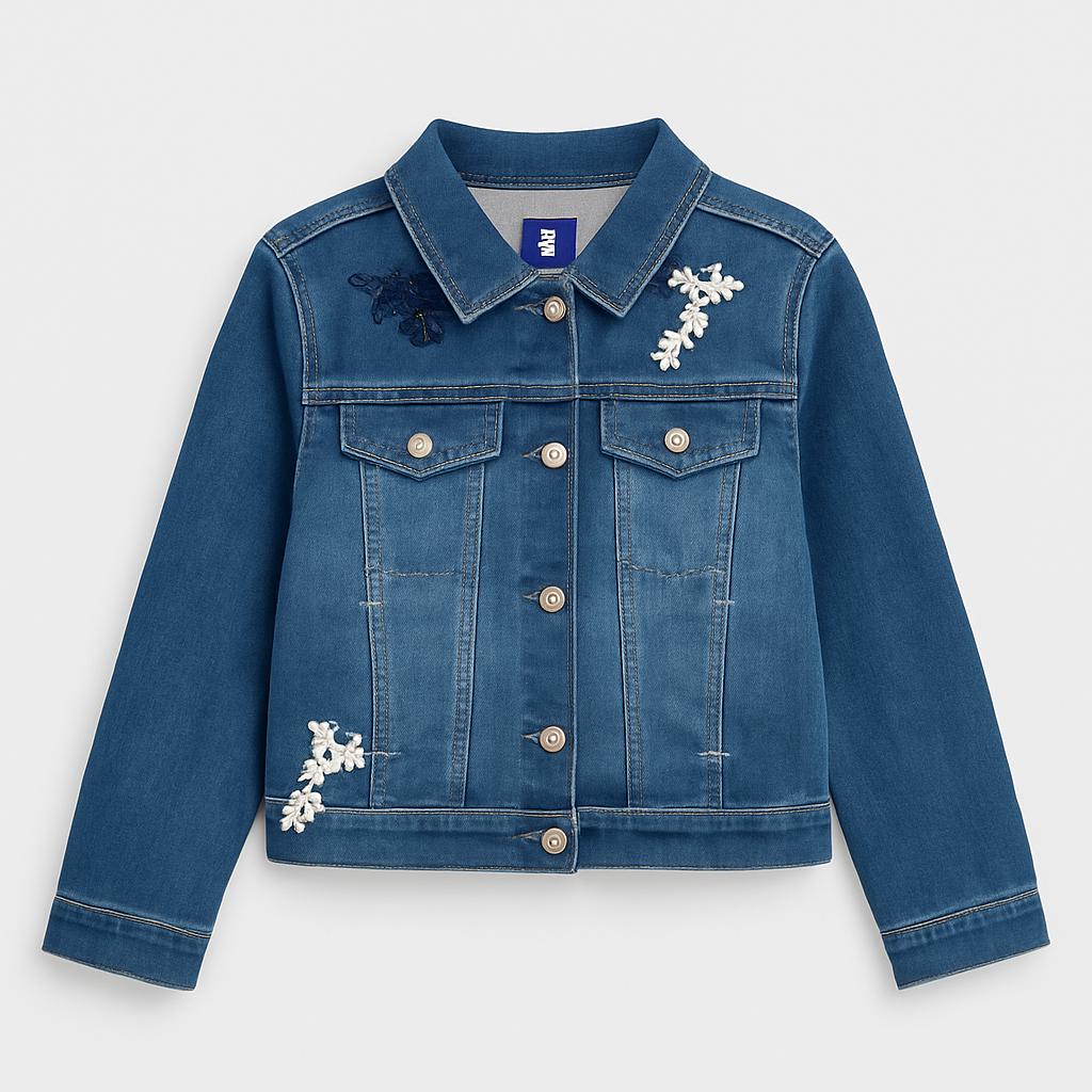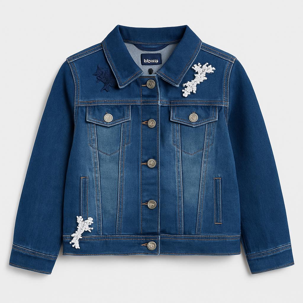 Questa giacca di jeans per bambini è un vero classico intramontabile! Realizzata in denim di alta qualità, presenta un'incantevole tonalità di blu che si abbina facilmente a qualsiasi outfit. Decorata con dettagli floreali ricamati, aggiunge un tocco di dolcezza e personalità. I bottoni metallizzati e le due tasche frontali non solo sono pratici, ma rendono anche il look ancora più trendy. Con il suo taglio comodo e versatile, questa giacca è perfetta per le fresche serate primaverili o autunnali ed è stata già amata, mantenendosi in ottime condizioni. Un capo ideale per le piccole fashioniste che desiderano esprimere il loro stile unico!