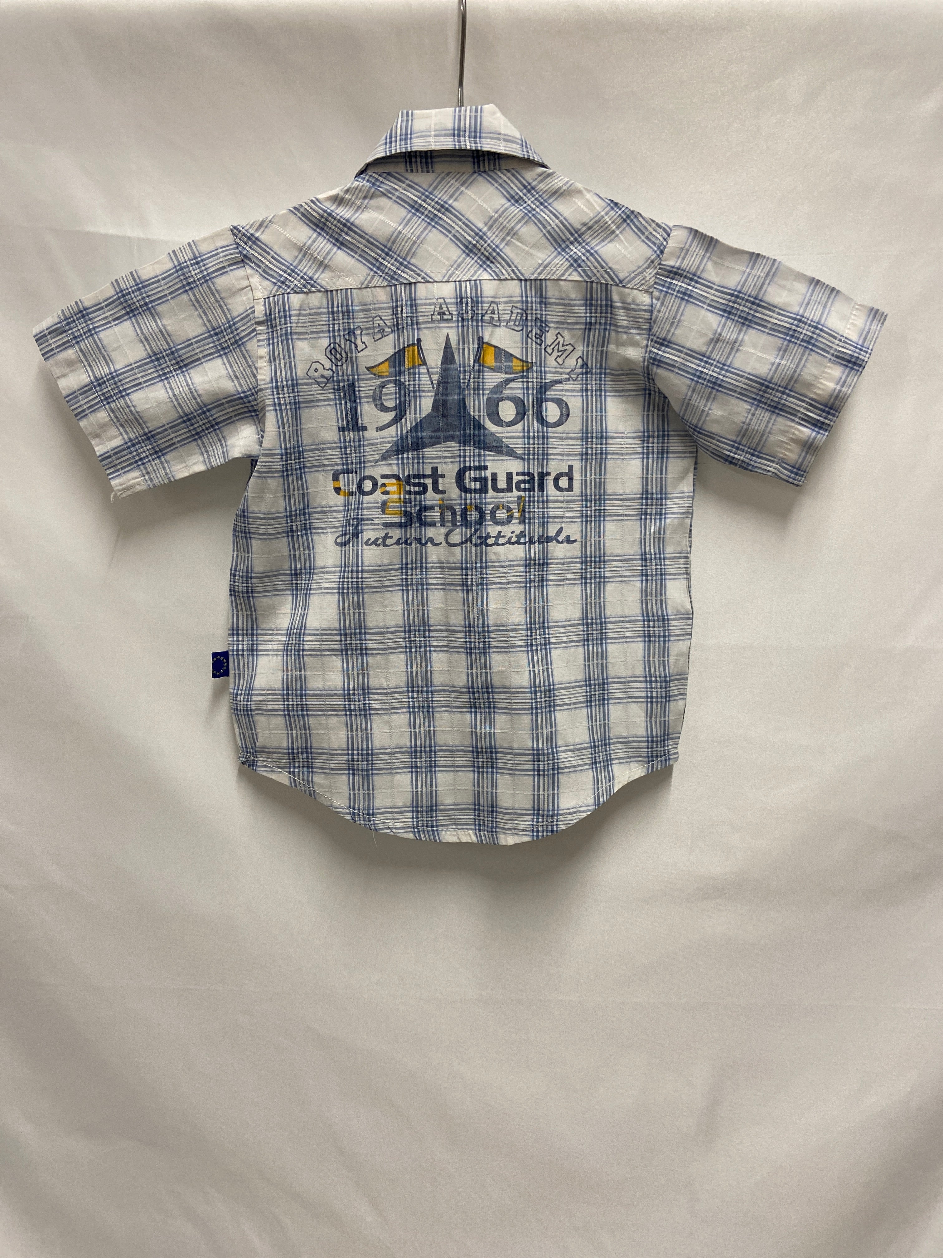 Questa elegante camicia a maniche corte è perfetta per i piccoli esploratori! Realizzata in morbido cotone, presenta un classico motivo a quadri blu e bianco che aggiunge un tocco di freschezza. Le due tasche sul petto e i bottoni scuri la rendono trendy e pratica. Ideale per occasioni speciali o per un look casual di tutti i giorni, questa camicia usata è in ottime condizioni e pronta per nuove avventure. Un capo versatile che ogni bambino amerà indossare!