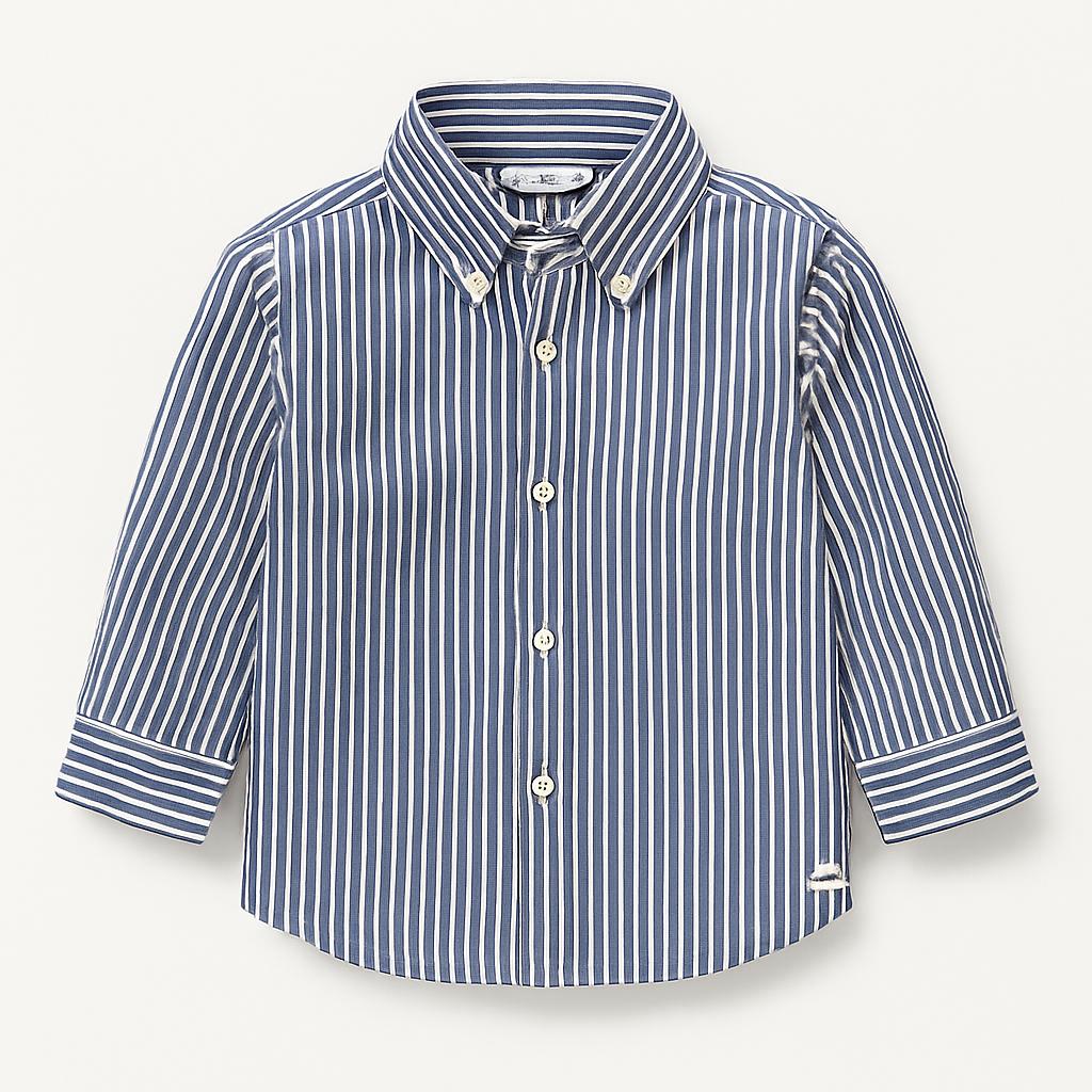 Questa camicia a righe di marca sarà un'aggiunta elegante al guardaroba del tuo piccolo! Realizzata in morbido cotone, presenta una raffinata combinazione di righe blu e bianche che aggiungono un tocco di classe. Il colletto button-down e i bottoni frontali donano un'aria sofisticata, perfetta per occasioni speciali o per un look pulito e ordinato. Nonostante sia un capo usato, si presenta in ottime condizioni, pronto per affrontare nuove avventure con stile! Ideale per i piccoli che amano vestirsi con eleganza e comfort!