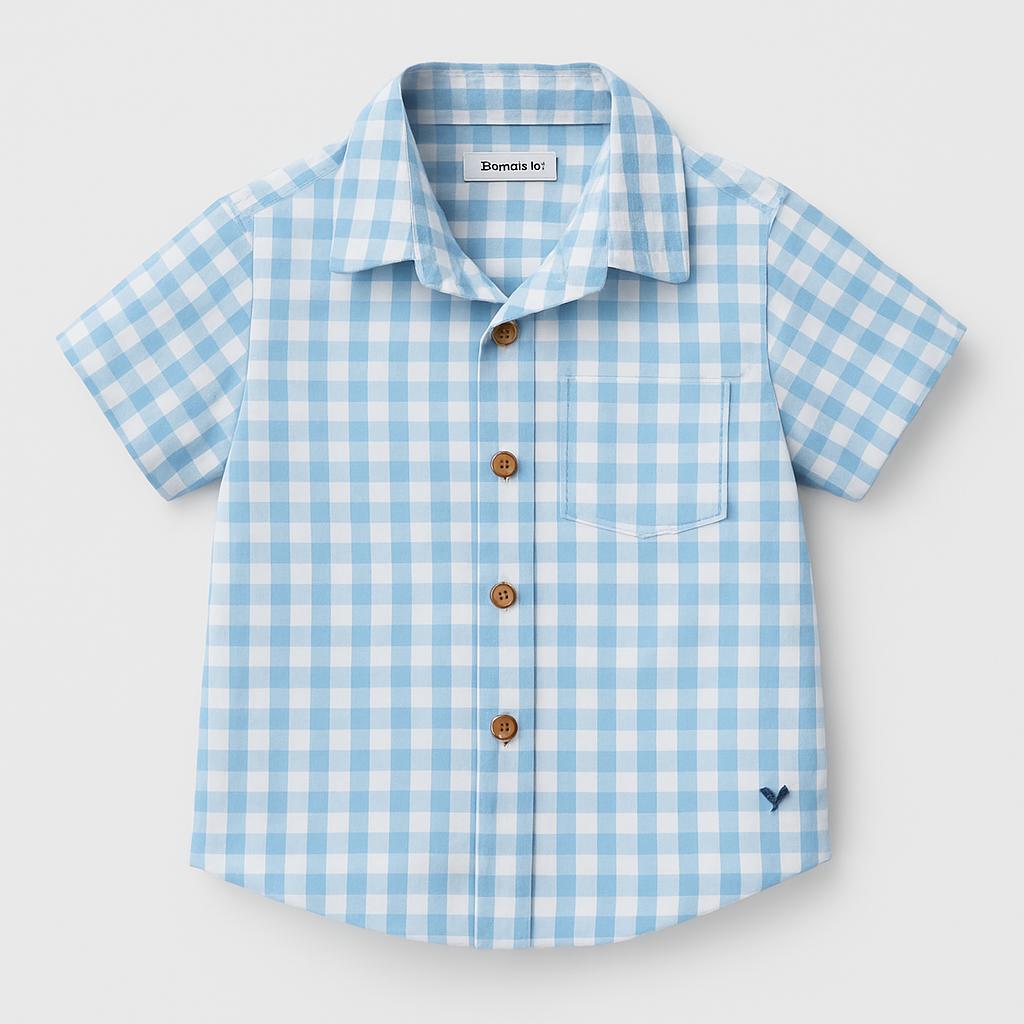 Questa adorabile camicia a maniche corte è perfetta per i tuoi piccoli esploratori! Realizzata in cotone leggero, presenta un delizioso motivo a quadretti azzurri e bianchi che richiama l’estate. Le grandi bottoni in legno regalano un tocco rustico e accogliente, mentre il colletto classico le conferisce un allure elegante e casual. È ideale per picnic, giornate al parco o feste con gli amici! Nonostante sia un capo usato, si presenta in ottime condizioni, pronto per essere indossato e fare bella figura. Aggiungi un po’ di stile al guardaroba del tuo bambino con questa camicia che combina comfort e trend!