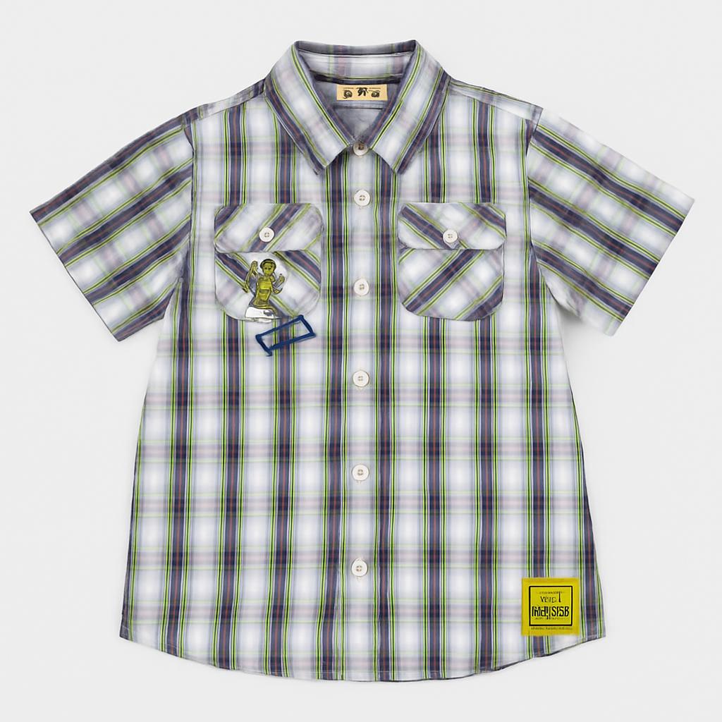 Questo divertente e fresco shirt con maniche corte è perfetto per i piccoli esploratori! Realizzato in morbido cotone, presenta un delizioso motivo a quadratini blu, verde e bianco, ideale per l'estate. I dettagli delle due tasche sul petto e le applicazioni decorative aggiungono un tocco creativo e giocoso. La chiusura con bottoni rende questo capo pratico e facile da indossare. Pur essendo un abito usato, si presenta in ottime condizioni, pronto per accompagnare il tuo bimbo in avventure all'aperto e momenti di gioco! Un capo trendy e comodo che non può mancare nel guardaroba!