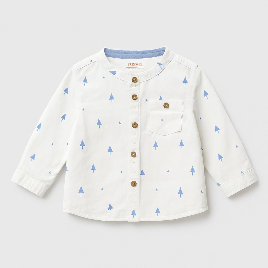 Questa adorabile camicia bianca a maniche lunghe è perfetta per ogni piccolo esploratore! Realizzata in un morbido cotone, offre comfort e libertà di movimento. Decorata con un delicato motivo di alberi blu, aggiunge un tocco di freschezza e avventura a qualsiasi look. I bottoni frontali e il colletto tondeggiante completano il design, rendendola ideale per occasioni casual o giornate spensierate all'aria aperta. Nonostante sia un capo usato, è in buone condizioni e pronta a far brillare il guardaroba del tuo bambino!