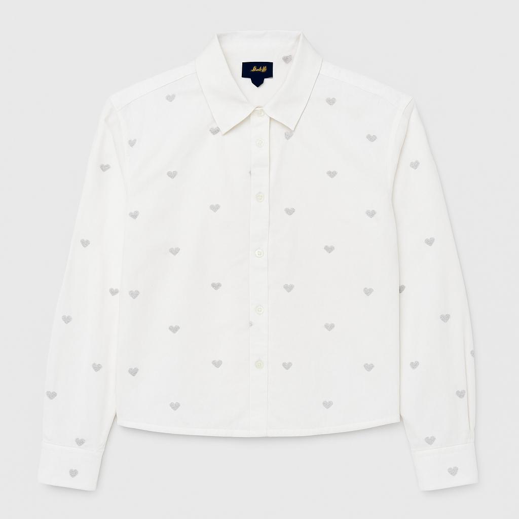 Questa adorabile camicia bianca di marca OVS porterà un tocco di dolcezza al guardaroba dei tuoi piccoli! Realizzata in tessuto leggero e morbido, la camicia è decorata con deliziosi cuoricini ricamati che aggiungono una nota giocosa e affettuosa. Con il suo taglio cropped e colletto elegante, è perfetta per essere indossata sopra un vestitino o con un paio di pantaloni. Le maniche lunghe la rendono ideale per le fresche giornate primaverili o autunnali. Nonostante sia un capo usato, è in ottime condizioni, pronta a far brillare il look della tua bambina! Un must-have per le piccole romantiche!